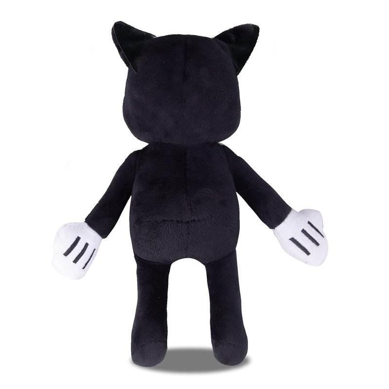 Cartoon Cat Plush toy has a cute and horror appearance with big ears and eyes, the red mouth, and the body is black.