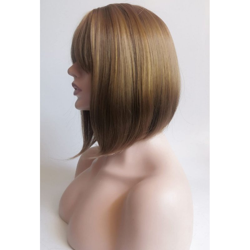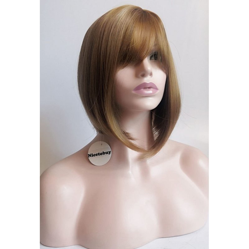 Nicetobuy Umeet Short Straight Bob Wigs With Bangs Women’s Wig Short Length Blonde Highlights Hair Synthetic Wigs for women