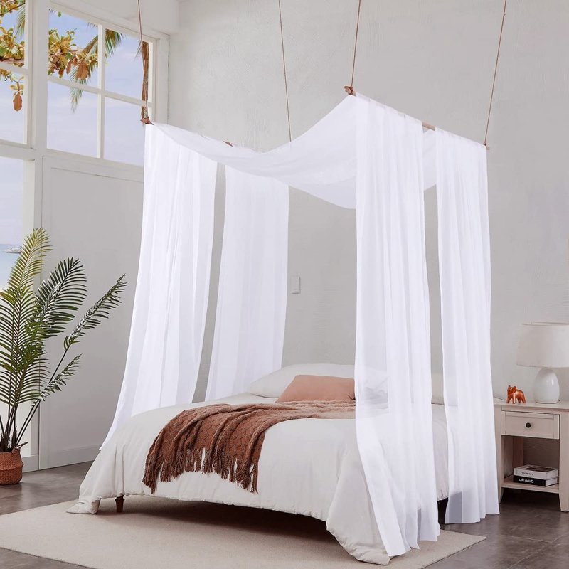 NICETOWN Sheer Canopy Bed Curtains Panels 216 - Home Decoration Sheer Voile Scarf Valance for Wedding (1 Panel, W60 x L216, White)