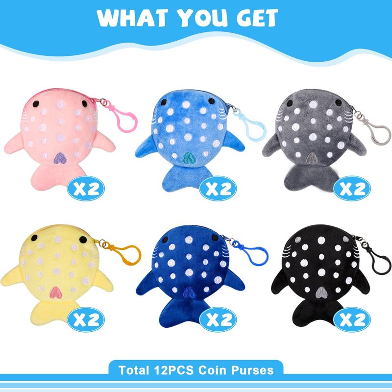 - WHAT YOU GET: Package includes total 12PCS whale shark coin bags– grey x 2, pink x 2, yellow x 2, black x 2, blue x 2, navy blue x 2. And our 18 months worry-free warranty.