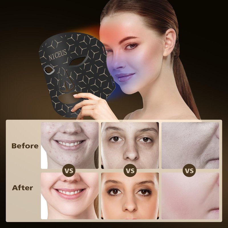 - NICEUS Red & Blue Light Facial Treatment Mask: In addition to the regular red (630nm) blue (465nm), we have added NIR (850nm) green (530nm), violet, indigo, yellow and orange. Each color is tailored to address diverse skin needs, delivering benefits such as reduced wrinkles,enhanced collagen production, even skin tone, and balanced hydration for an improved complexion.
