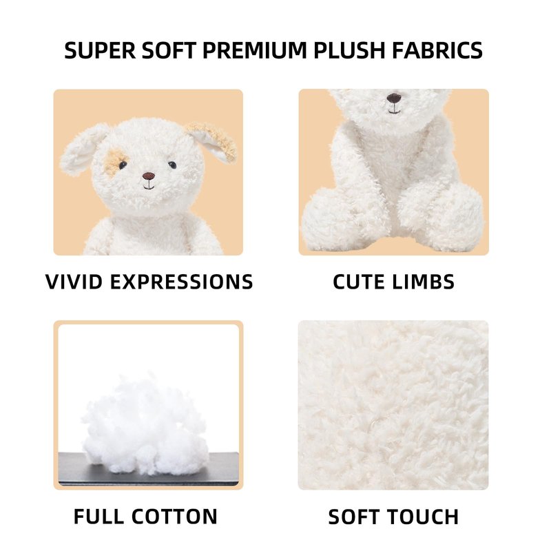- SAFE & SOFT MATERIAL: Niceween stuffed animals dog are made of high-quality soft and comfortable plush fabric and PP cotton filling. 100% safe and natural material, It is safe for children and is friendly to the skin, Don't worry about your child's skin allergies, Giving you kid a better touch feeling. Please avoid using a washing machine to clean those plush toys, as it may cause distortion and tearing. We recommend gently cleaning the toy's surface with detergent and a soft-bristled brush.
