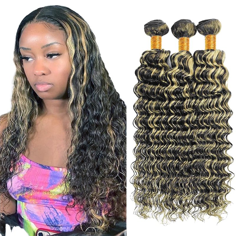 2.Hair Texture:P1B/27 Highlight Blonde Deep Wave Human Hair Bundles.