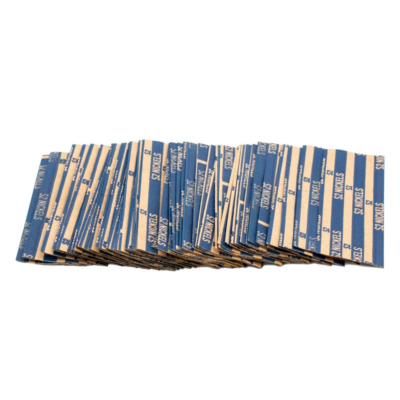 Each order of Nickel Flat Striped Coin Wrappers includes 1,000 blue color-coded nickel flat striped wrappers. Each wrapper holds up to 40 nickels with a total dollar value of $2 in each roll.