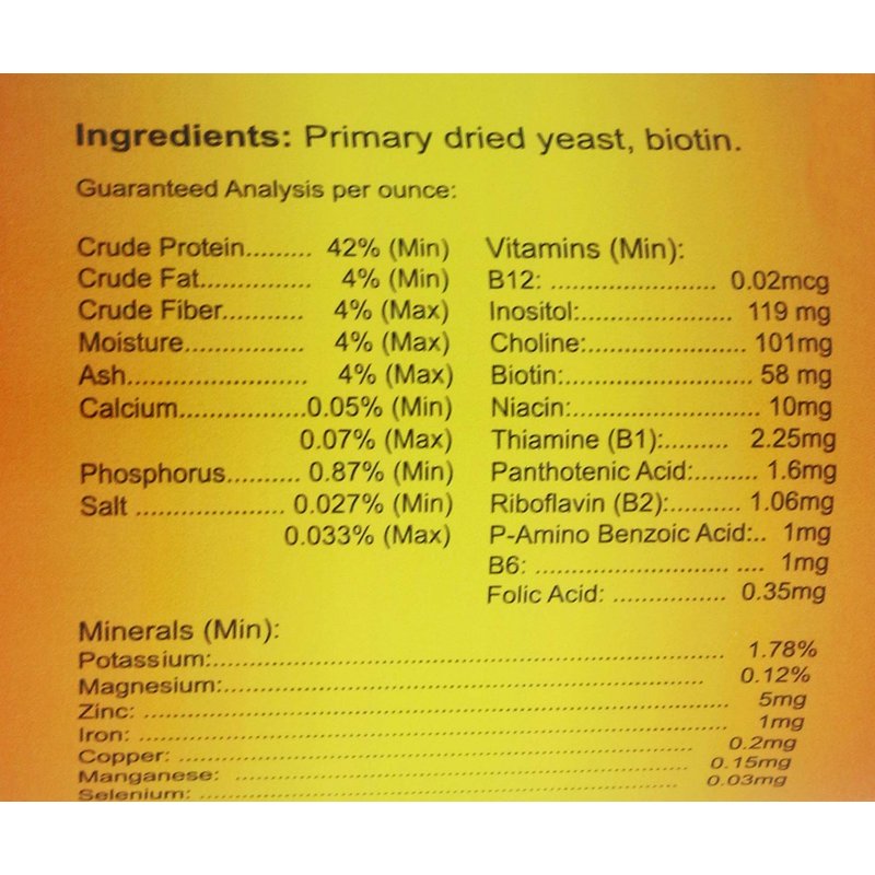 Nutritional supplement rich in biotin (6 mg per tsp), an essential B vitamin and nutritional enzyme for the synthesis of fatty acids - important building blocks for skin and coat. Biotin helps metabolize carbohydrates and proteins, maximizing the nutritional value of your pet's diet. Pet owners feed biotin for dry skin, constant scratching and dull thinning coat. A safe, economical and effective natural alternative to harmful steroids and antihistamines. Makes your pet look and feel the way nature intended! Great tasting and easy to feed. No artificial colors, flavors or preservatives. Feed 1/4 tsp. per 30 lbs body weight each day. Available in four economical sizes.