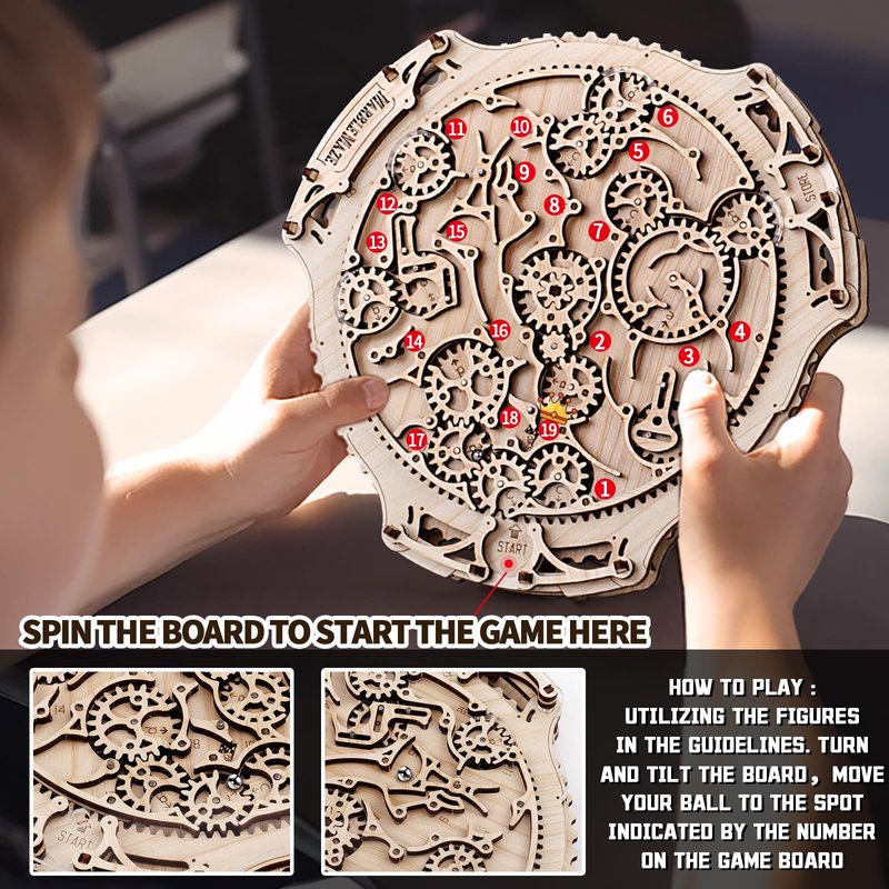 Develop essential skills such as motor skills, concentration, perception, and patience with this maze toy. Suitable for people of all ages, it's a great family game that parents can enjoy playing with their children. Colleagues can also challenge each other to relieve stress at work. Dive into the world of strategic thinking and spatial awareness with our 3D Wooden Puzzle, a captivating Marble Maze that doubles as a Wooden Brain Teaser. This board game is not just a toy; it's an educational tool designed to challenge and entertain. The Gravity Marble Game is a family-friendly activity that enhances cognitive skills and promotes hand-eye coordination.