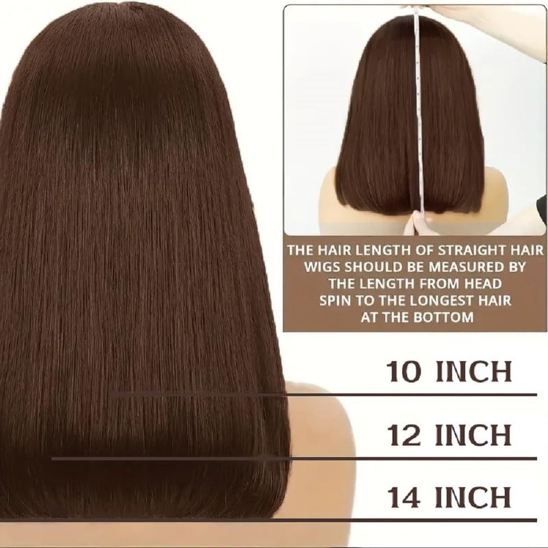 - Package: You will get chocolate brown bang wig human hair + 1 wig cap. We have the classic natural black and chocolate brown colors and 4 sizes for you to choose from