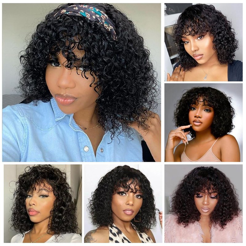 - CURLY BOB WIG HUMAN HAIR: Our curly human hair wig with bangs are made from real human hair and have the soft touch and shine of human hair and can be styled with bleaching and coloring