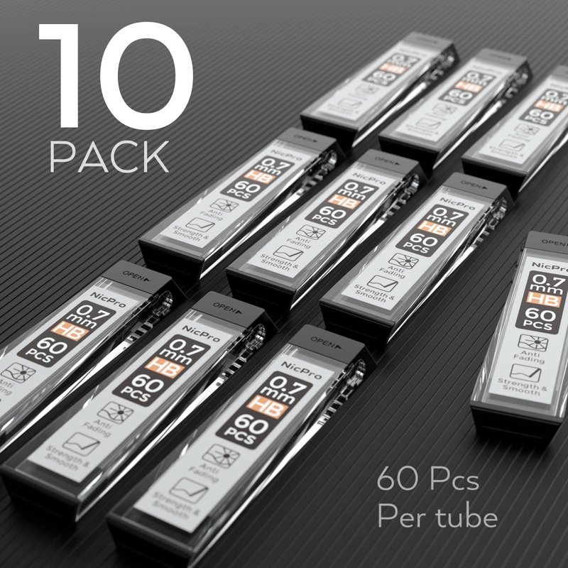 Nicpro 600 PCS Lead Refills 0.7mm HB #2 Break Resistant Mechanical Pencil Refills 0.7 mm, 60 Pack Per Tube, 10 Tubes