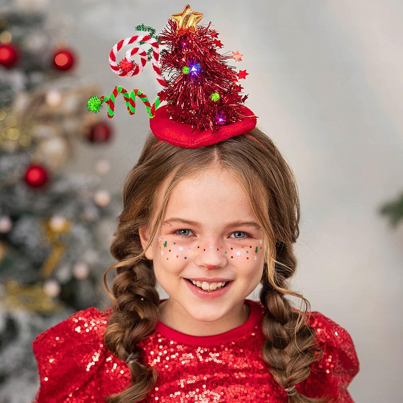 - Christmas tree hair band can emit shining light. Christmas headbands are matched with a shiny accessory to make you more popular at Christmas parties.