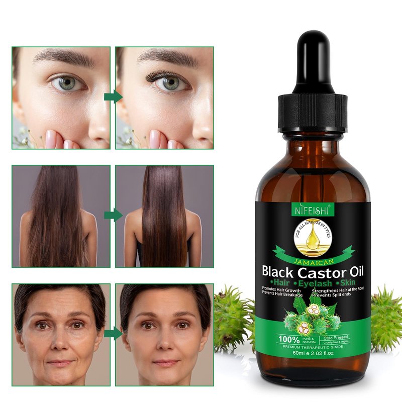 NIFEISHI Jamaican Black Castor Oil for Hair Growth, 100% Pure Natural Castor Oil Organic Cold Pressed Unrefined Body Oil, Skin & Scalp Moisturizing Massage Oil 60ml