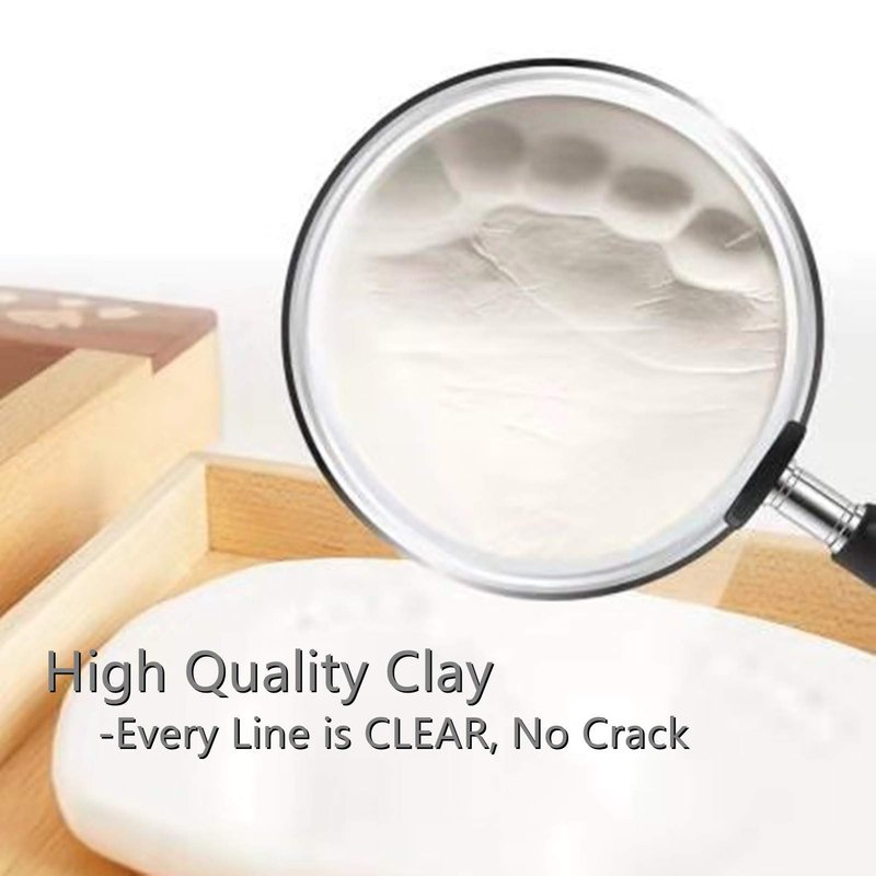 - PREMIUN QUALITY - 100% baby safe clay that is able to capture life-like details, so you’ll be able to see every line and groove of your child’s hands and feet. High quality clay will not crack after drying. The bright glass ensures that the unique footprint is consistent and does not turn yellow.