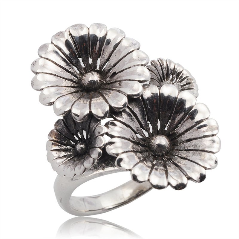 Night Bazaar: Stylish Flower Sterling Silver Ring Size 11.