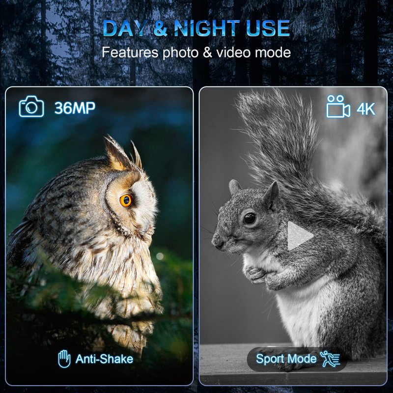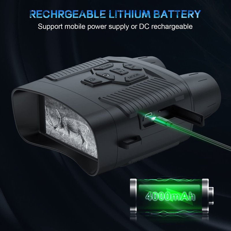 - Rechargeable Lithium Battery: Features 4000mAh rechargeable lithium battery, can be charged anytime and anywhere with a power bank or car charger. Feature an 850 NM infrared illuminator which allows you to view animals in pitch dark for hours. They don't require any AA batteries. Convinience, Save money & Eco-friend.