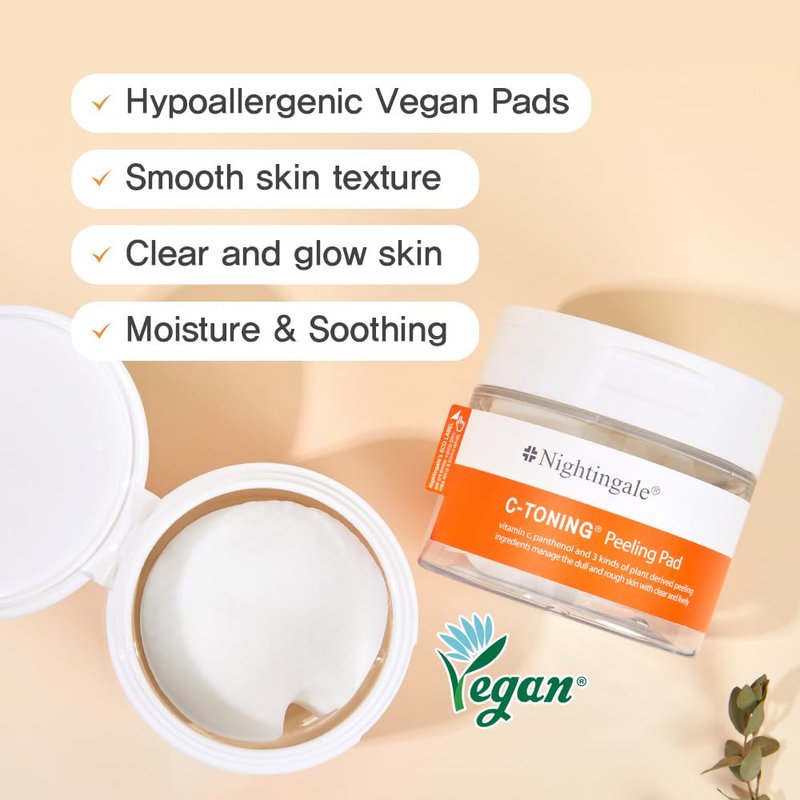 Nightingale C-toning Peeling Pads with Vitamin Complex + AHA∙BHA∙PHA + Niacinamide, Exfoliating Peel Pads, Sebum Care, Improve Skin Texture, Hypoallergenic, Vegan Pads, korean skin care