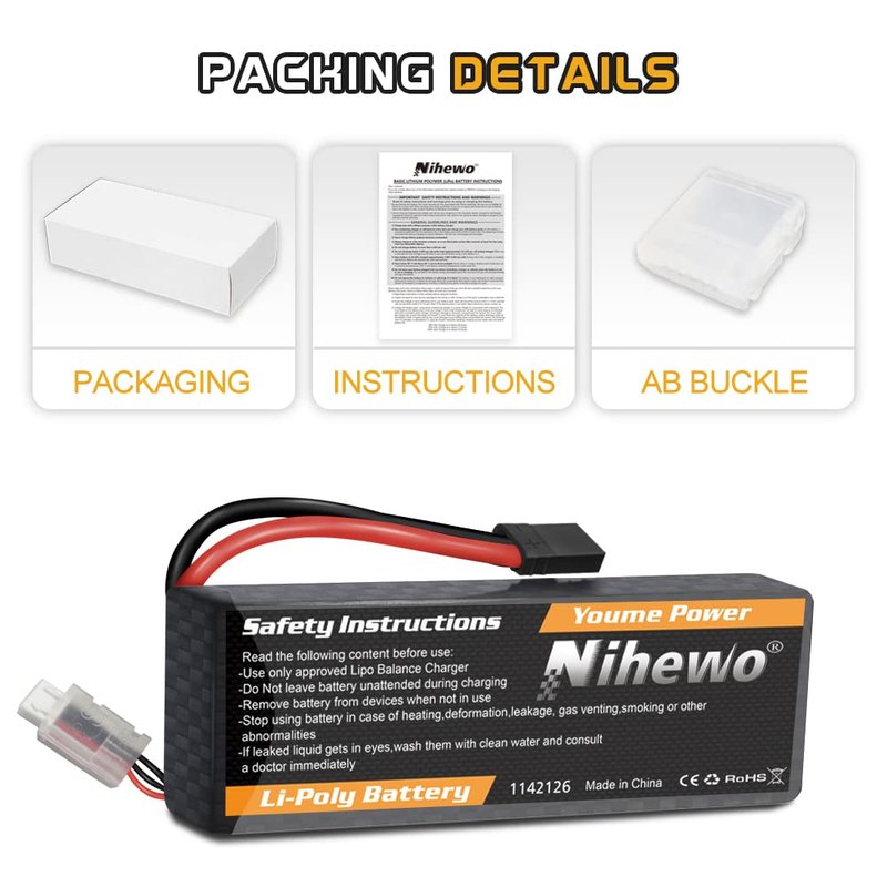 - 🔋LiPo Battery Application - specially compatible with 1/8 and 1/10 Slashh/Stampede/Spartan/Bandit/Rustler series, Arrma, Losi, HPI, Team Associated, Axial, Kyosho,Duratrax, Jammin, and more! (It is only applicable when the voltage, size and plug are matched. And for the plug, you can replace it by yourself)