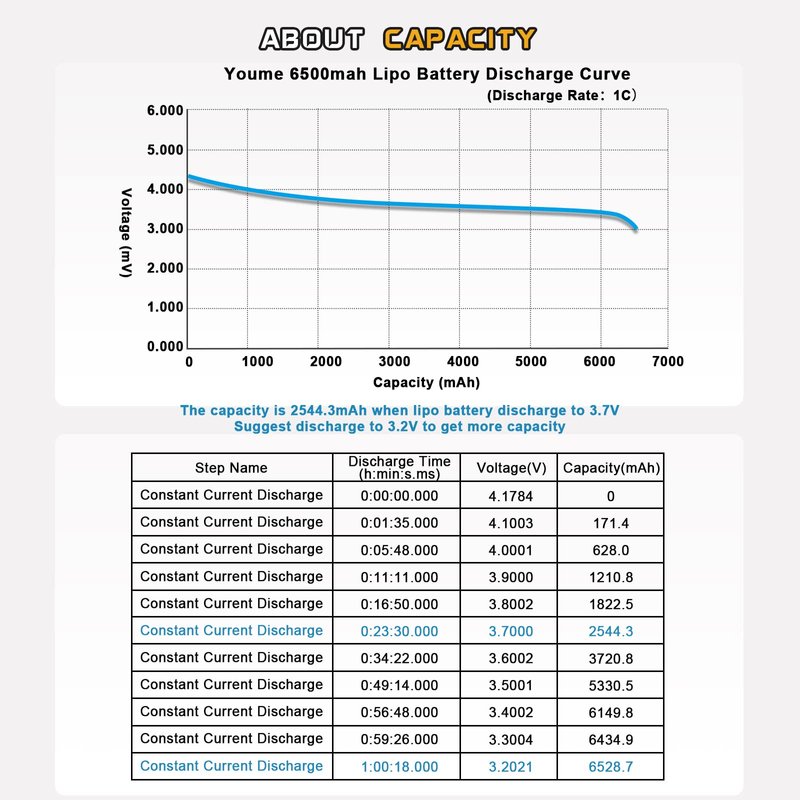 - 🔋High-performance 11.1V Lipo Battery - ISO international quality certification(more safe), premium materials( Lithium polymer), real capacity(6500mAh),longer cycle life(220 times), energy density(307Wh/kg),longer running time(+12%), faster charging time(-6%), lightweight( -5%), lower Resistance(-4%)