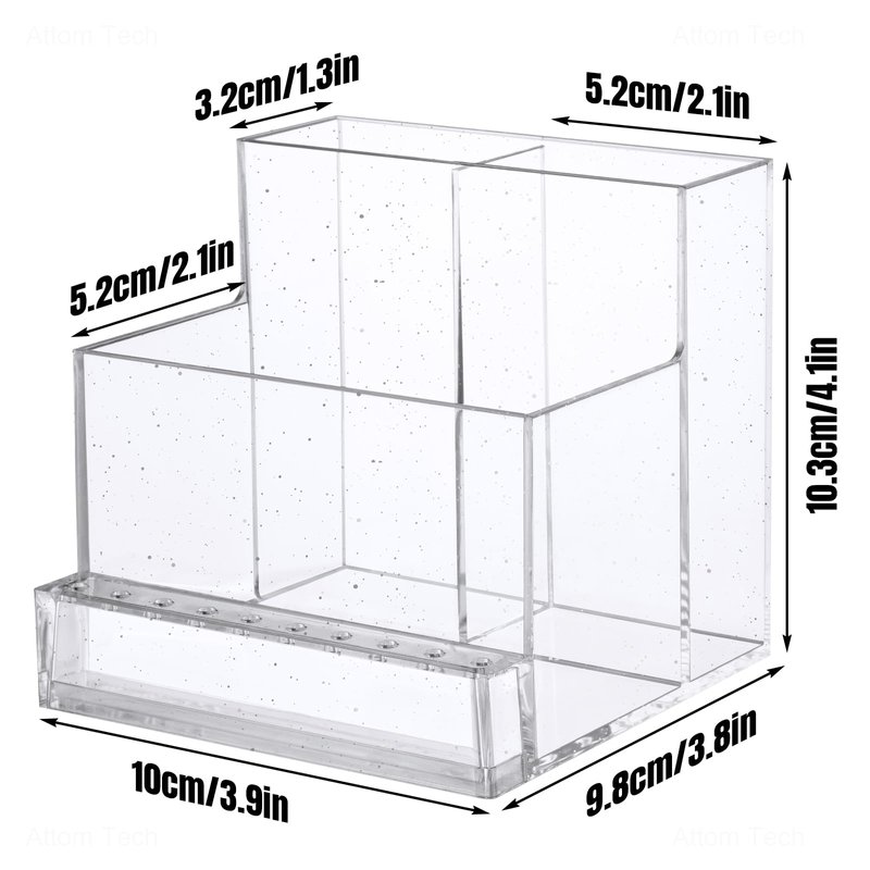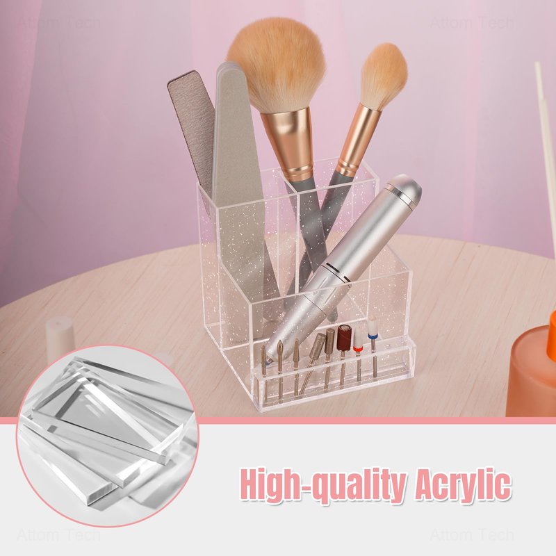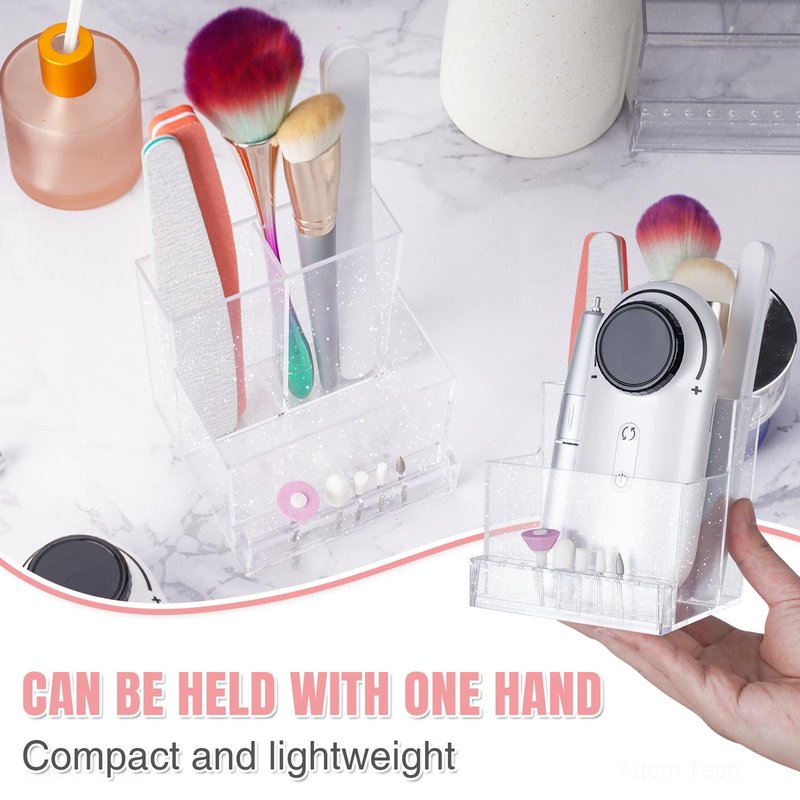 - Large storage & Display capacity:3 Rows Design from Low to High, the lowest layer with 10 small holes for holding nail art drill bits, the 2 layer for nail drill machine, and the highest layer with 2 compartments for storage nail drill bit machine plugs and pens (Also can display makeup brushes, eyebrow, eyeliner pencils and other nail art & makeup tools )