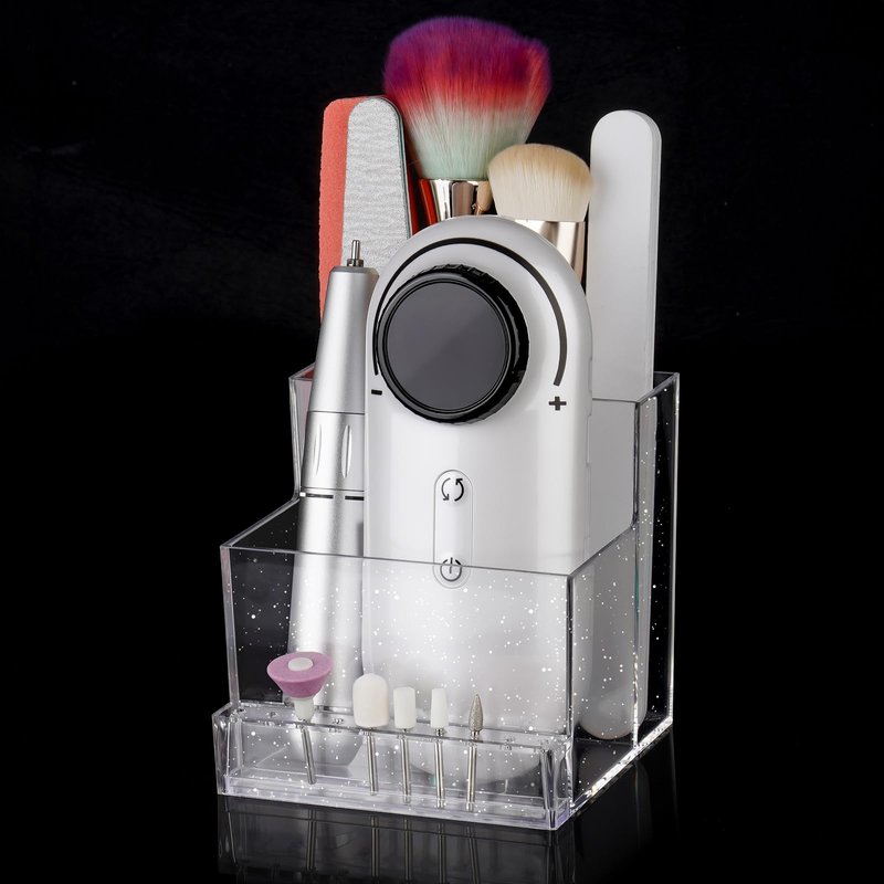 NiHome Mini Nail Drill Machine & Bits Storage Box (Clear Glitter)