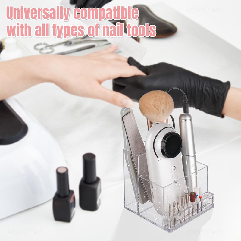 - Compact & Portable: The Nail Drill Machine & Bits Storage Box is designed to be compact and portable, making it convenient for both professional nail technicians and DIY enthusiasts to carry and store their nail drill bits. Its small size allows for easy transportation, whether you're working at a salon or traveling.