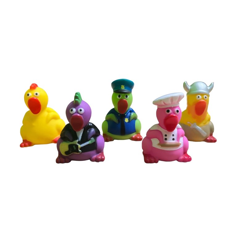 - SAFE FOR PLAY: Don't worry while your little ones are playing with these hilarious chicken character toys. They are made from high-quality, non-toxic, and water resistant rubber and are both fun and safe for children 3 and up.