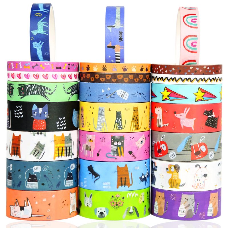 - 【Pretty Gift Set】We have designed a unique cute blue box for this kawaii tape set. Hope this cat dog washy tape can bring you and your family a colorful and dynamic artistic life. The perfect gift box packaging is also the best gift for family and friends on Thanksgiving Christmas festivals and birthdays.
