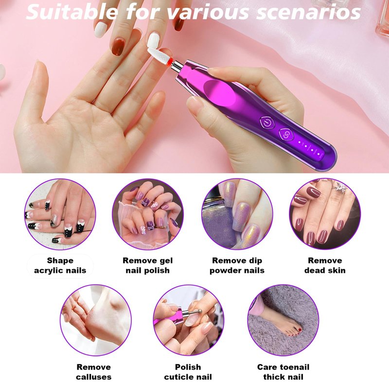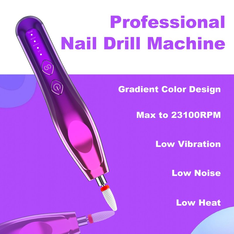 NIKOOCARE Professional Portable Cordless Nail Drill 21000 RPM Manicure Pedicure Drill Acrylic Gel Nail Shape Tools Nail Grinding Machine with Spotlight Purple