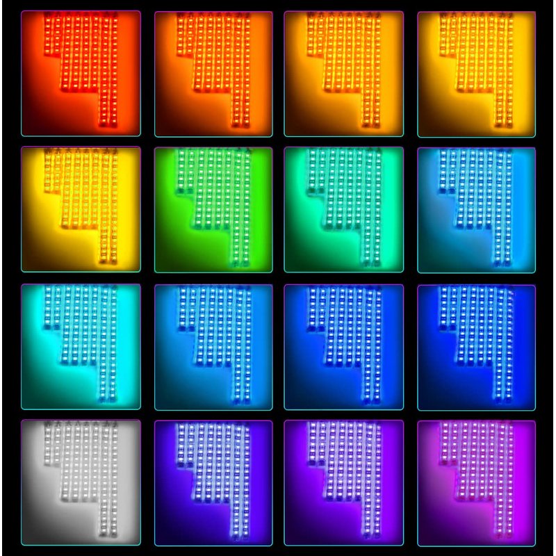 - Highlight your motorcycle: Our motorcycle led lights delivers 16 million static colors, has 8 dynamic strobe modes, 2 preset Jump and 12 fading patterns, 4 explosion flash modes, also 1 white light mode always on for daily lighting. Unique sound active modes enhance your driving satisfaction.
