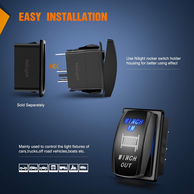 Nilight 90005B Momentary Laser Rocker Switch 7Pin Winch in Winch Wiring Harness Kit 20A/12V 10A/24V Switch Jumper Wires Set,2 Years Warranty , Blue