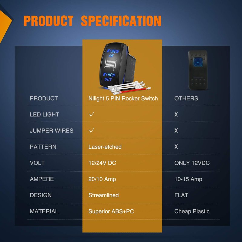 - Easy to install and use: 7 pin on-off rocker switch with DPDT design (double pole double Throw), simple installation, can control 2 circuits.