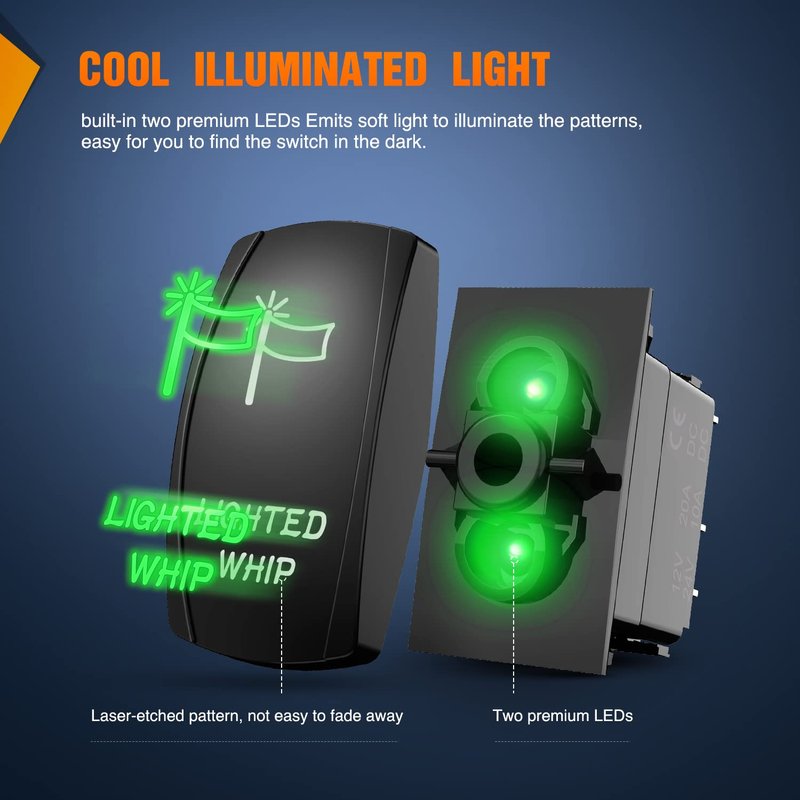 - Easy to install and use: 5 pin on-off rocker switch with SPST design (single pole single Throw), simple installation, freely turn on or off the light