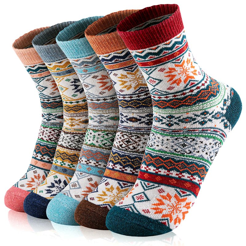 - 🦶 CHIC VINTAGE DESIGN - Vintage and stylish design thermal socks, the patterns are all in different colors, so you can easily match all your outfits and shoes. The retro design of these hiking socks makes you the most striking woman or man in the crowd. Brighten up those chilly winter mornings and keep your feet warm with these close-fitting socks.