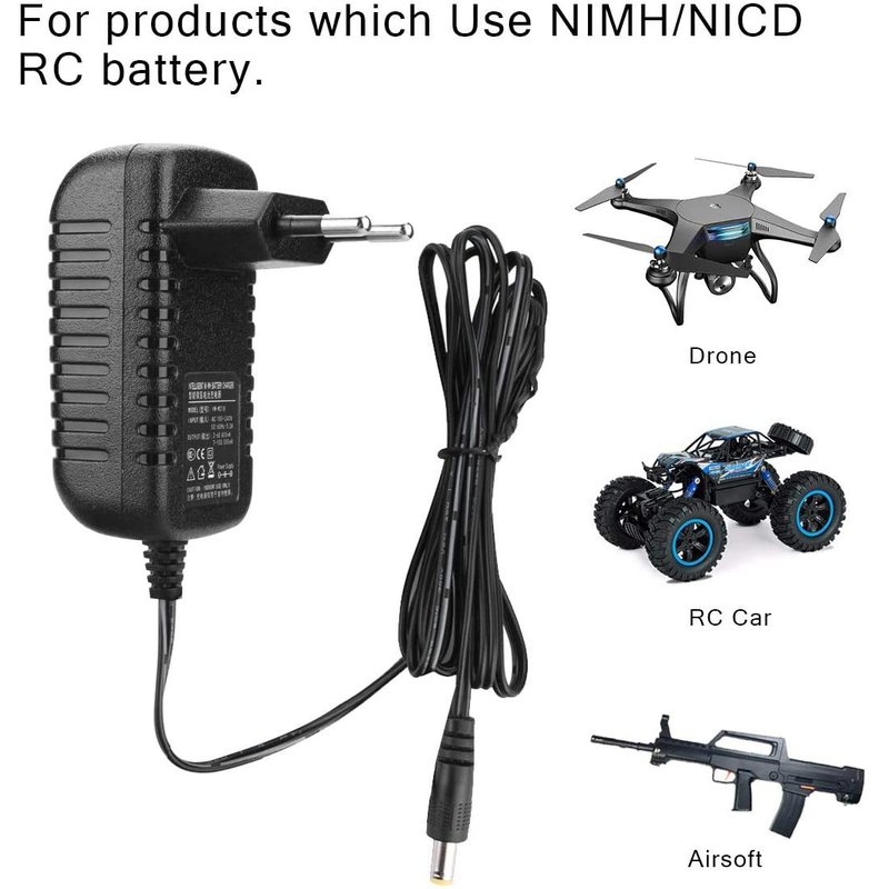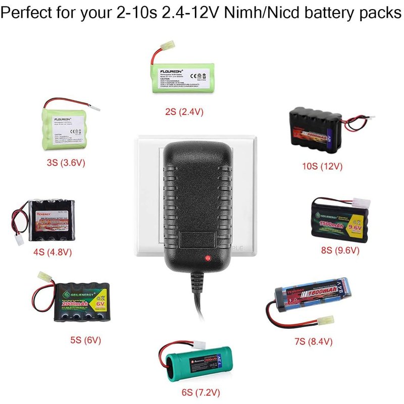 - 【Wide Battery Type Compatability】-The 12V 500mA-800mA NiMH battery charger can charge NiMH/NiCd battery packs that are 3.6V,4.8V,6V,7.2V, 8.4V,9.6V,10.8V,12.0v (2-10 cells). NOTE: This charger is only for recharging NiMH/NiCd batteries, do not charge LiPo /Li-ion/LiFePO4 batteries.