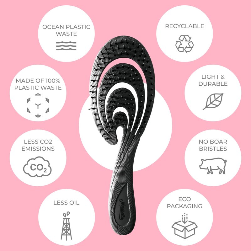 - Sustainable and Vegan: Our organic detangling brush is made of recycled plastic from collected waste from the seas. The brush also doesn't have any rubber coating. It is 100% vegan and has absolutely 0% animal hair in its bristles