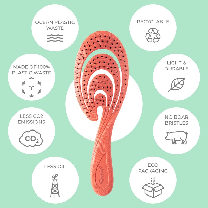 - Sustainable and Vegan: Our organic detangling brush is made of recycled plastic from collected waste from the seas. The brush also doesn't have any rubber coating. It is 100% vegan and has absolutely 0% animal hair in its bristles