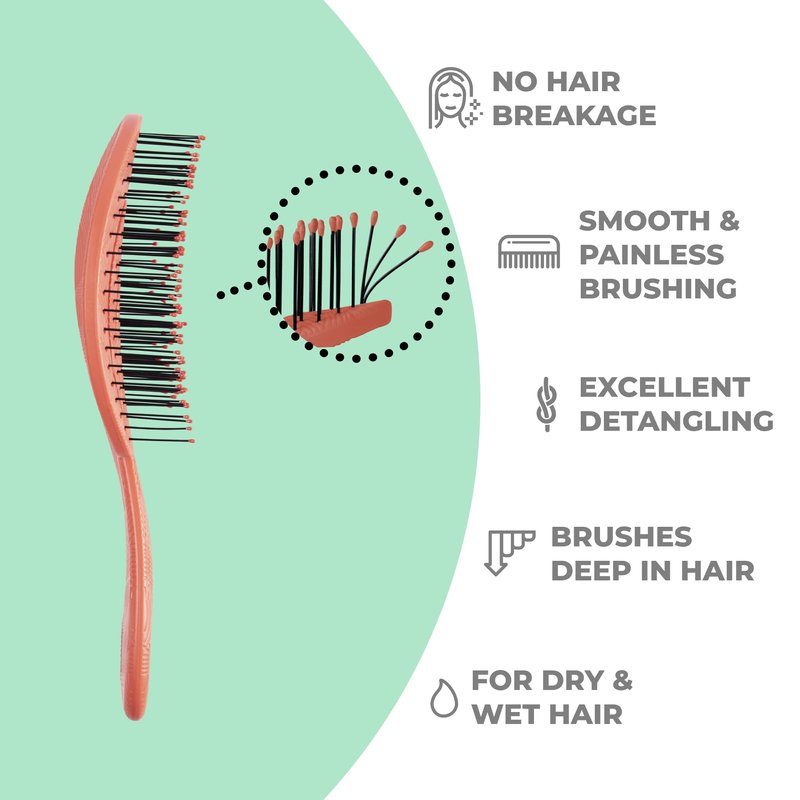 - Ergonomic Design: The bristle brush has a lightweight and comfortable handle and a wave-like ergonomic design (With the brush adapting to the shape of your scalp). This creates a soothing brushing experience without any damage or split-ends