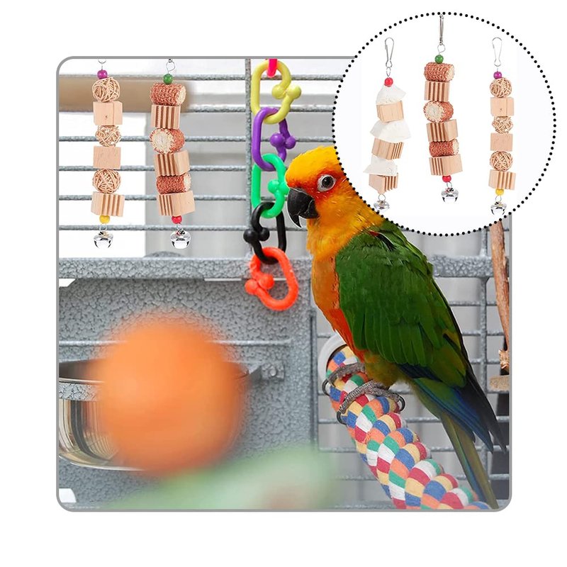 - 【Material】The parrot chewing toy is made of high-quality materials, this product is natural and non-toxic, it is a great tool to keep in a bird cage and can be used with confidence.
