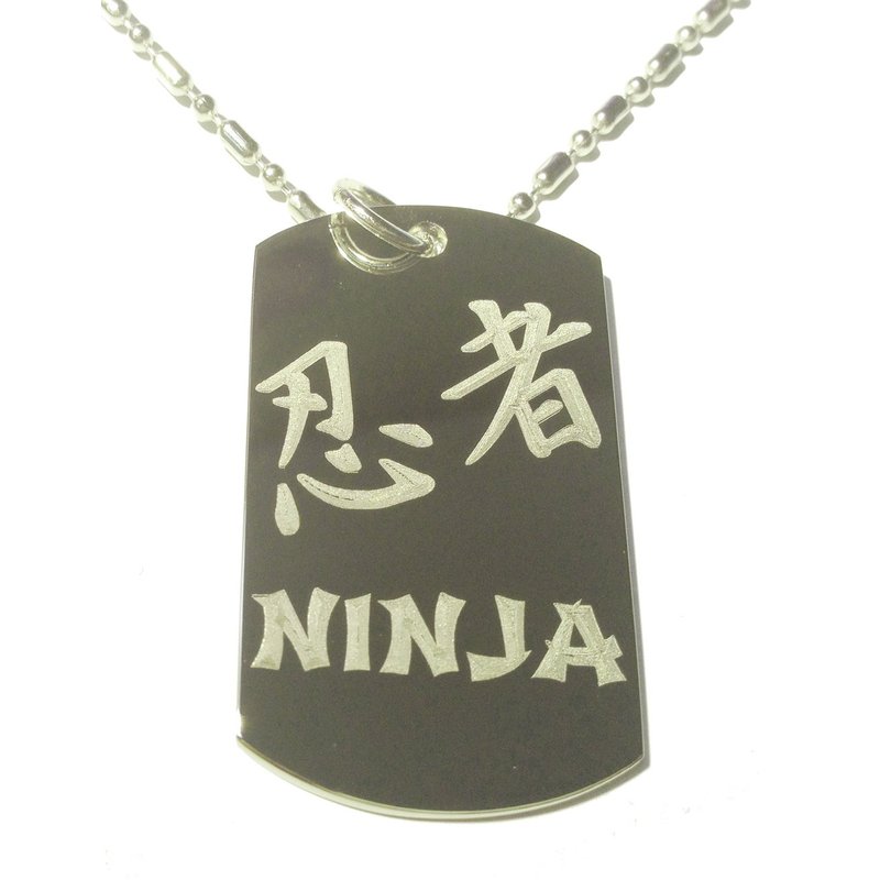 Ninja Warrior Kanji Japanese Character Logo Symbol - Military Dog Tag, Luggage Tag Metal Chain Necklace
