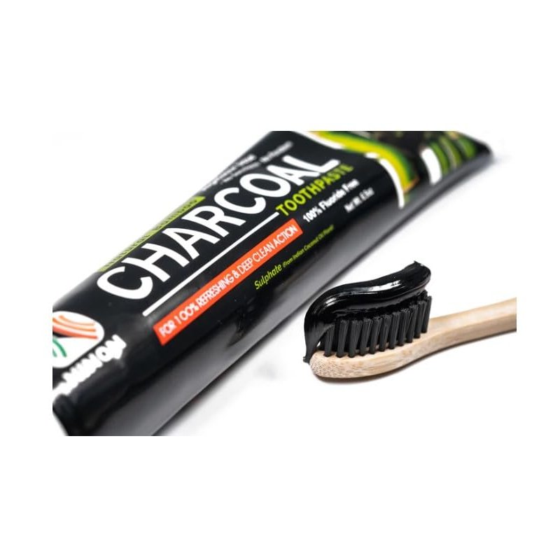 Ninon Charcoal Toothpaste (6.5oz) 1 Pack- 100% Fluoride Free - No Saccharin - No Paraben - Vegetable Base