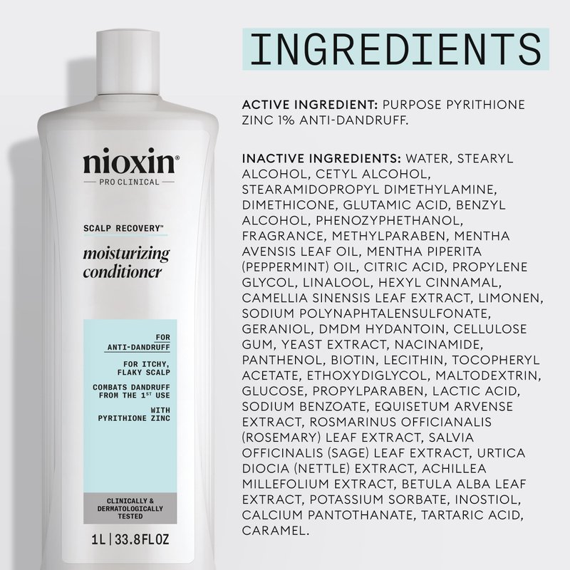 Nioxin Scalp Recovery Anti-Dandruff Moisturizing Conditioner for Itchy & Flaky Scalp, Pyrithione Zinc, 33.8 oz