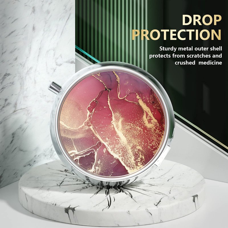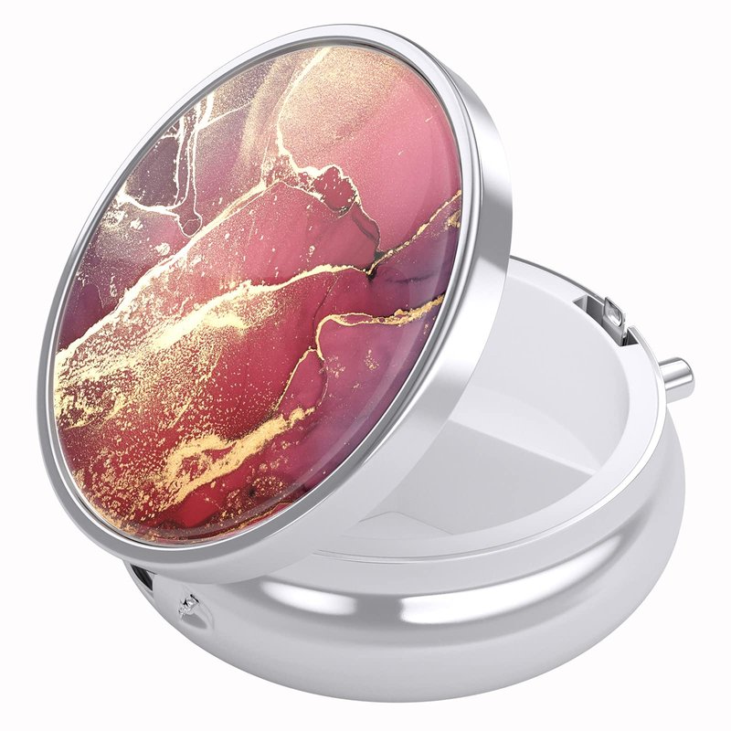 Nipichsha Pill Box, Small Pill Case for Purse & Pocket, Cute Medicine Organizer Travel Pillbox, Portable Pill Container Holder to Hold Vitamins, Medication, Fish Oil and Supplements, Red Marble