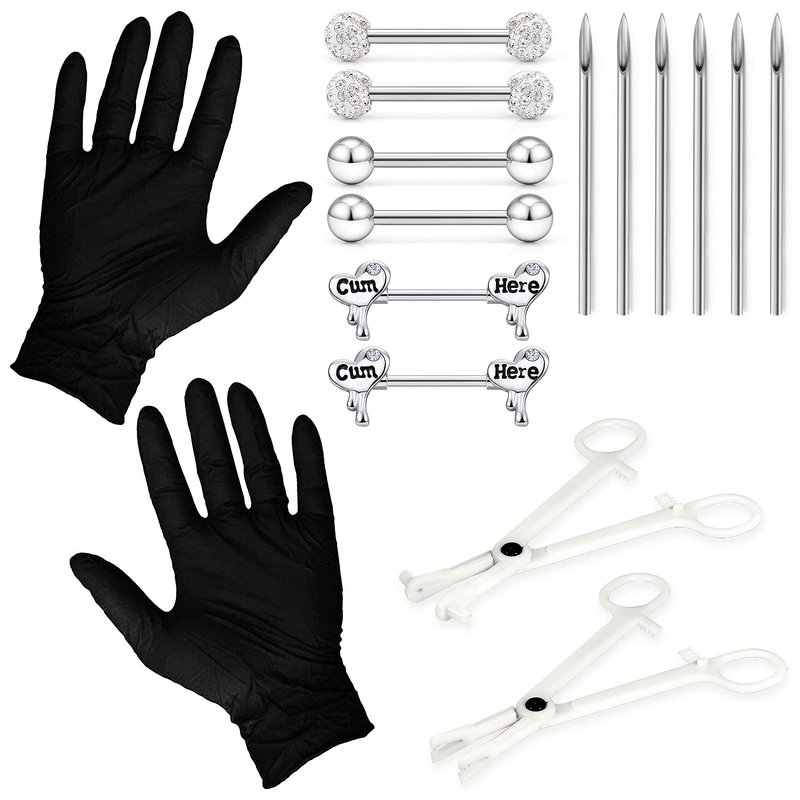 - [SUITABLE FOR USE]: These Piercing Kit Tools Can Be Used For Nipple Rings Piercing Jewelry.