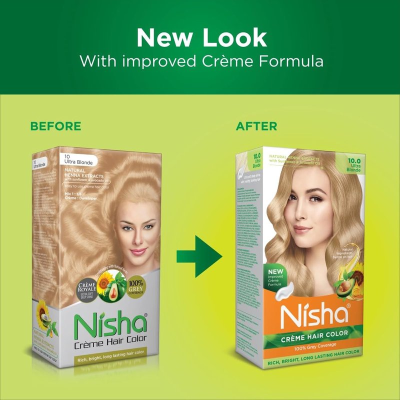 Nisha Creme Permanent Hair Color 100 percent Gray Coverage Hair Dye Easy to Apply Long Lasting Hair Colouring For Ultra Soft Deep Shine Conditioning With Natural Herbs Pack of 3 (Ultra Blonde)