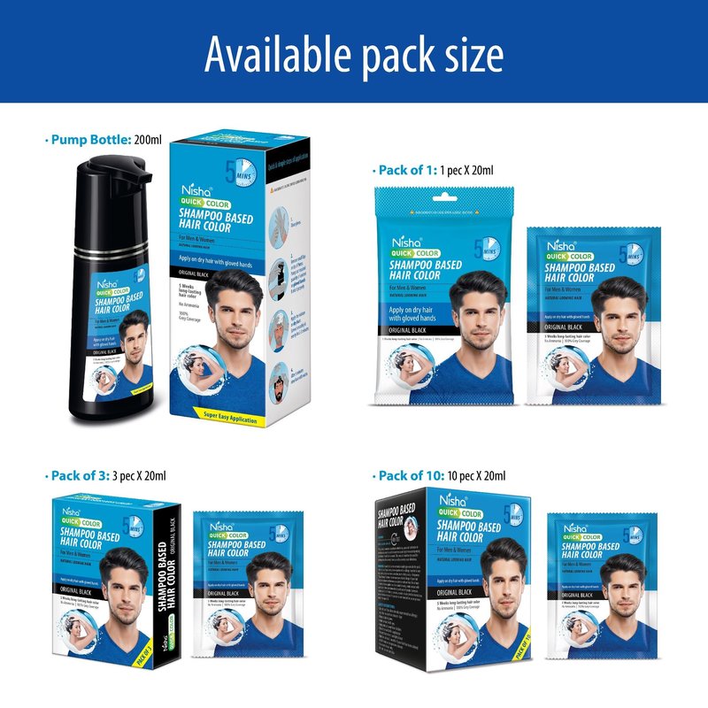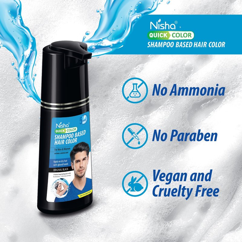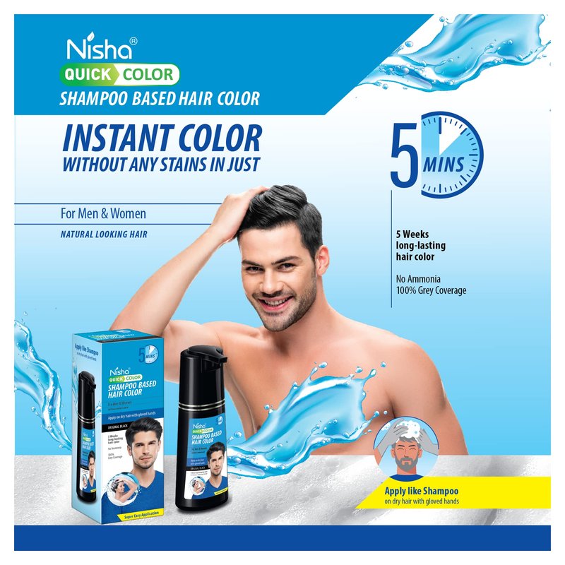 - QUICK COLOR: This Nisha hair color shampoo colored your grey hair quickly and easily within 5 minutes.