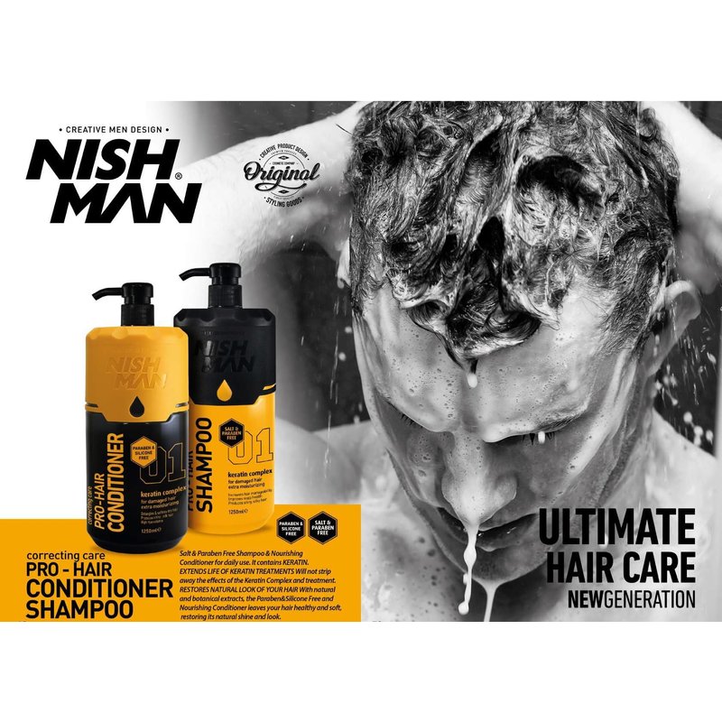Nishman Salt & Paraben Free Correcting Care Pro-Hair Shampoo - Keratin Complex - 400ml | 13.5 Fl.oz