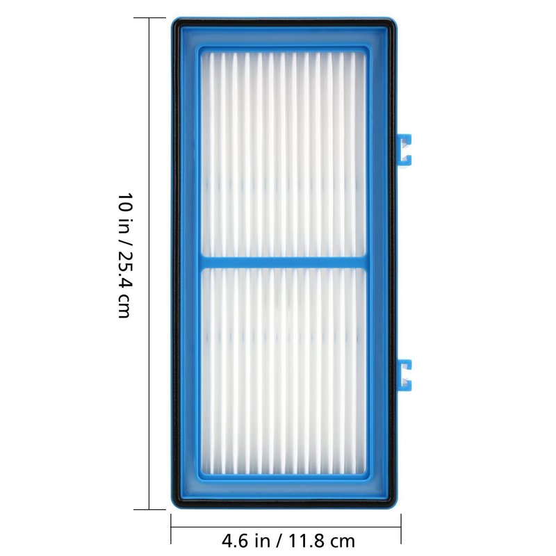 - SIZE: HEPA filter measures 1.2 x 10 x 4.6 inches and the carbon filter measures 9.5 x 4 x 0.25 inches.