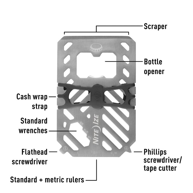 Nite Ize Financial Multi Tool Wallet - Stainless Steel 7-in-1 Multi Tool - Multi Tool Travel Wallet for Men & Women - Multi Tool with Bottle Opener, Screwdriver, Rulers & More - Silver
