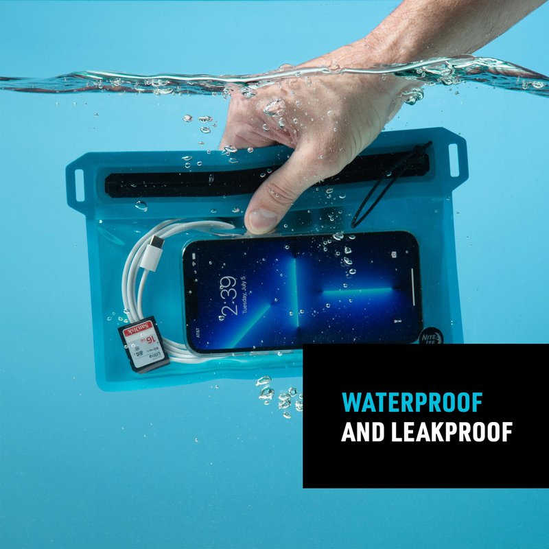 Nite Ize RunOff Waterproof Travel Pouch with TRU Zip - Dry Pouch for Phone & Travel Necessities - Touchscreen Friendly Waterproof Pouch with Reliable Zipper - Blue, Small