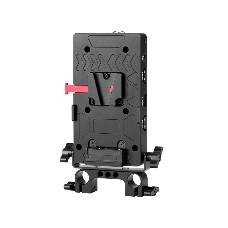Nitze V Mount Battery Plate with 15mm Rod Clamp, USB-A/USB-C/D-Tap/DC Output Ports and Power Switch Power Supply Splitter - N21-E