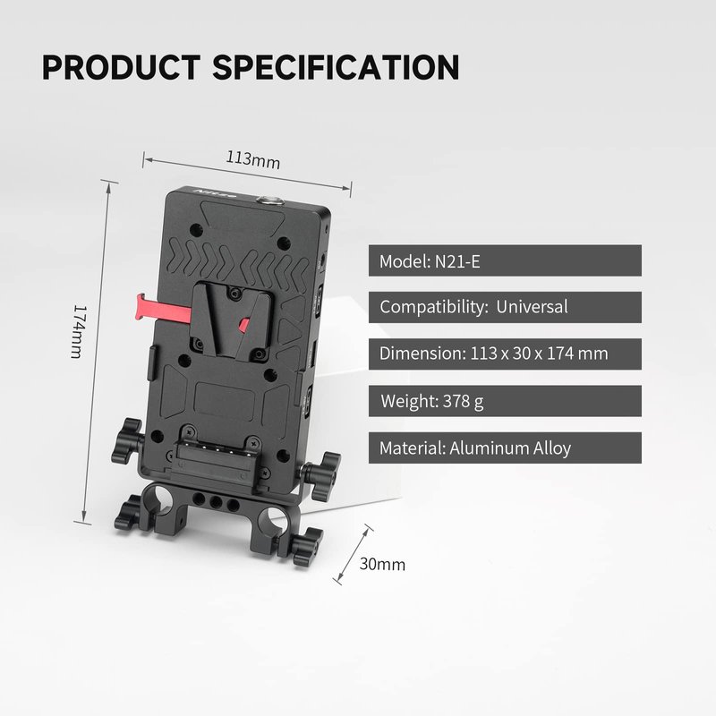 - 【High Durability】Nitze N21-E v mount battery plate with 15mm rod clamp is made of aluminum alloy which is sturdy and durable.